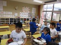 また、インフルエンザで欠席する児童が増えてきたため、2年生は給食を教室で食べました。感染の拡大を防ぐため、グループは作らず、全員前を向いて給食を食べました。早くお友達がもどってくると良いですね。