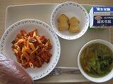 「サンラータン」は、中国の四川料理の一つで、辛味と酢の酸味がきいたスープです。給食では、食べやすいように辛味、酸味とも少しおさえて作っています。