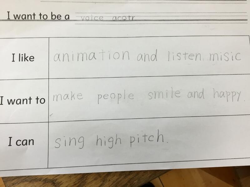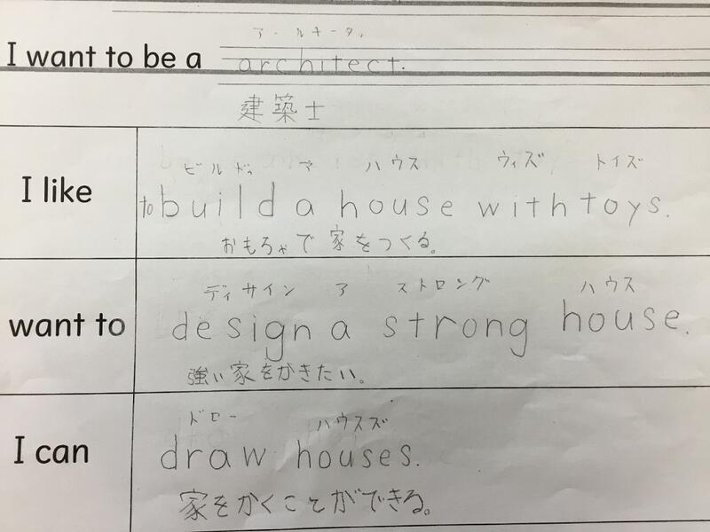 I want to be a~、I like ~、I want to ~、I can~、の文を使って発表しました。