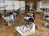 ランチルームと教室に分かれてではありましたが、みんなおいしそうに食べていました。1年生もしっかり自分の席について、ルールを守っていただいていました。