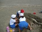 今日の2年生の図画工作は「土ってきもちがいい」でした。砂場で楽しく活動しました。