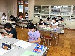 今年度も、3・4・5年生の希望者27名による放課後教室が始まりました。今回は、「密」を避けるために図書室と家庭科室の2カ所に分かれて行います。