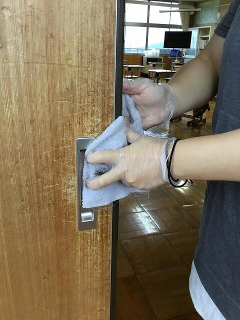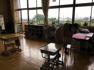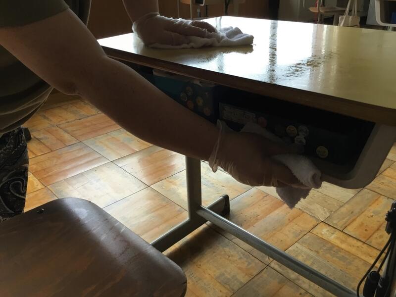 校内の消毒作業について、アシストネットのみなさんにお声かけしたところ、ご賛同していただき、7月から早速活動をしています。千塚小の子どもたちが安心して、学校生活を過ごすことができるように、各教室、特別教室、ランチルームをきれいにしてくださっています。本当にありがとうございます。