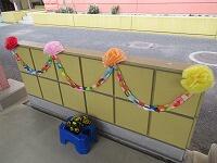 ☆赤・白・ピンクの小花を、毎日たくさん折りました。休み時間や昼休みもがんばりました。