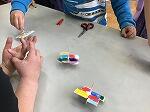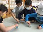 3月11日(木)の図工の時間に、牛乳パックを使って「こま」を作りました。組み合わせることが、とても難しかったですが、完成して回ったときは、とても喜んでいました。色の塗り方も工夫していました。