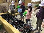 3月12日(金)にマリーゴールドの種をまきました。種と花びらがまざっている中から、細長い種を見つけるのは大変でしたが、種をよく観察することができました。「種には、いろいろな形があるんだね。」「細長い種だね。」と大発見をしたように喜んでいました。すてきな花が咲きますように。