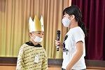 27日(火)3校時、「1年生を迎える会」を行いました。1年生は、手作りの王冠をかぶって6年生と一緒に入場しました。インタビューでは、元気いっぱい自分の名前と好きなものを発表することができました。プレゼント贈呈では、2年生が作ってくれたメダルと、みんなのメッセージ入り下じきをもらってとても嬉しそうでした。5月には、ワールドグループでゲームを行う「1年生を迎える会パートⅡ」を計画しています。1年生のみなさん、早くみんなと仲良しになってくださいね。