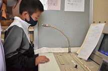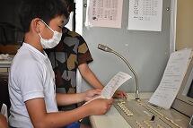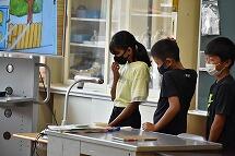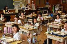 猛暑のため、校長室からリモートでの式。子どもたちは各クラスで校長先生のお話や、代表児童の作文を聞きました。
