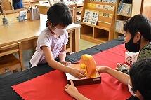 昼休みには、それぞれがイメージした「ぺらりひょん」と「ちょっとまてぞう」を描く子どもたちの姿も見られました。