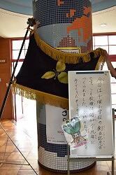 教頭先生が調べた千塚小の歴史と、6年生が総合学習で調べたことをパワーポイントにまとめて、全校生に紹介しました。初めてできた校旗は、保護者の方々の手作りだということがわかりました。すばらしいですね!