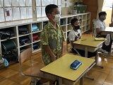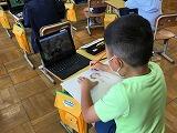 ZOOMで校長室と各クラスをつないで、振り返りを行っています。