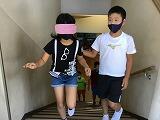 総合の学習では、福祉について勉強をしています。今回は目の不自由な人の立場になり、目をタオルで隠して階段の上り下りを行いました。体験者、補助をする人、記録者(撮影する人)と分けて、ローテーションでそれぞれの役目を行いました。