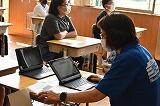 授業始めに毎回「フォニックス」という活動をしています。文字と音声を関連づけ、さらに動きとも一致させる活動です。絵の中から、アルファべットを探し出すのが、子どもたちは大好きです。タブレットを使いながら、楽しく活動しています。