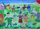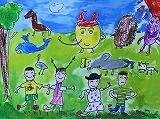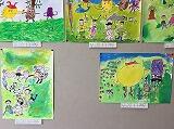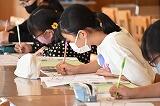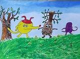 図工の授業に、担任の読み聞かせを聞いた後、感想画を描きました。子どもたちは、へんてこもりの楽しいできごとを表そうと一生懸命でした。お友達の上手に描けたところを鑑賞することもできました。