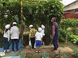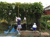 2年生は、学校技能員・石塚先生のお世話になり、はやとうりの収穫をしました。
