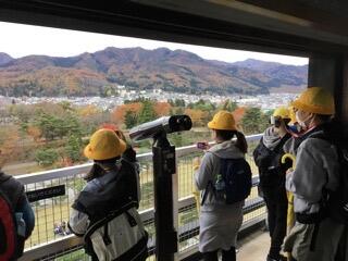 その後、鶴ヶ城の天守閣に。高いお城、大きな石垣に圧倒されましたね!これからお昼を食べ、会津の街を班別行動です!