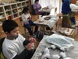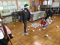 班の友達と協力をして、綿をできるだけ髙く積み上げる競争です。