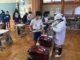 ランチルームでない場所でも、給食係や給食当番は手際よく準備を進めていました。