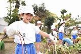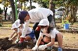 クラスのみんなと、サツマイモを掘りました。長くのびた蔓を取ってから、お芋掘りをしました。この蔓を使って、リースを作りました。サツマイモは、お家に持ち帰り美味しくいただきました。