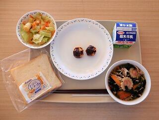今日の給食は、食パン、みかんジャム、揚げポーク焼売、醤油ラーメン、中華サラダです。