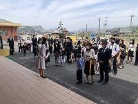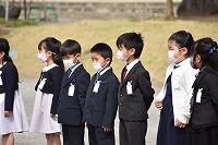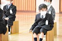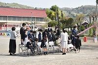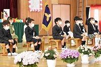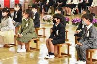 ↓↓ 入学式会場の体育館には、1年生とその保護者、そして在校生は6年生児童のみに制限しているので、2年生から5年生との対面でのご挨拶・・・「よろしくおねがいします」