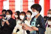 代表の6年生児童による「お迎えの言葉」で、千塚小学校のことを紹介してくれました。