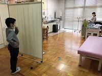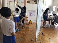 “密”を避け、子ども同士ができるだけすれ違わないように、保健室でついたて等の置き方に配慮して実施しました。
