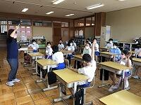 その後各教室やランチルームに移動し、リモートでワールドグループごとに「千塚小〇✕クイズ」や「校長先生のお話」を聞きました。