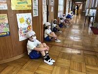 朝から、ランドセルを背負いヘルメットをかぶって歩いて登校・・・これだけでも1年生の子どもたちにとっては、大変なことです。昇降口に到着すると、疲れたのとホッとしたのとで、「ふぅ~」っとため息をついている子もいました
