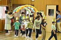 1年生を迎える会を実施しました。1年生が入学して2週間がたち、少しずつ学校生活にも慣れてきた様子です。1年生は体育館の入場前に6年生手作りの金色の王冠をかぶせてもらい、とても嬉しそうでした。