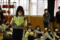↓↓ 6年生代表児童による「お迎えの言葉」 千塚小は、とてもいい学校です。