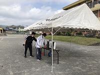 ↓↓ 朝から、先生方で協力して準備しています。実は…昨日の放課後も、先生方でテントの天幕張り・テント立て・固定をしてくれたのです。ありがたいですねハート