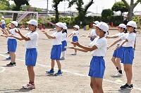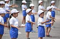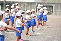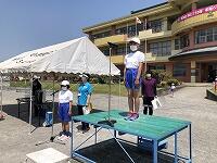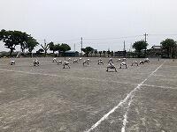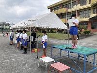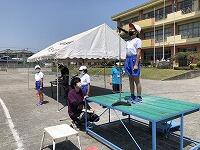 運動会当日は、かなり暑くなることが予想されます。子どもたちは、演技の時はマスクを外して、間隔をあけ、話をしないで行うことにしました。教員は基本的にマスクを付けますが、暑さ対策のため、「片耳ゴム」「あごマスク」にすることもありますので、どうぞご理解ください。