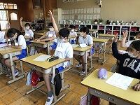 今日は、全学年が5時間授業で、「こどもSOS」の場所や通学路の危険箇所等を確認しながら下校する日です。