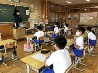 今日の下校から、マスクを外して帰りました。飛沫が飛ぶ汗・焦るのを防ぐために、「離れたところからの挨拶」や「会釈」で気持ちを表すよう指導しました喜ぶ・デレ