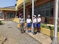 ↓↓ 業間の時間には、6年代表児童による国旗降納の動きの練習を行いました。