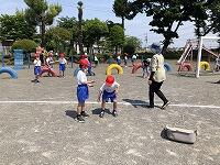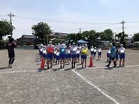 ↓↓ 暑くなりそうだったので、「熱中症計」を校庭に設置して、「暑さ指数」を確認しながら行いました。