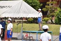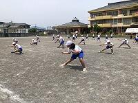 ↓↓ 体育主任の先生の説明を聞いて、練習開始!