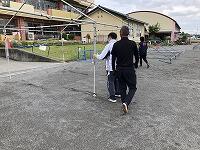 ↓↓ 昨日よりも、児童席の間隔を広く取れるようにするために、テントを2張多く移動しました。子どもたちは、ゆったり着席することができます了解