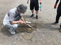 しばらく使っていなかったので、砂が固まってしまい、カチカチの状態。でも、みんなで力を合わせて頑張ったので、柔らかくなりました。