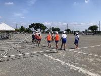 ↓↓ 朝から、先生方で協力して準備しています。実は…昨日の放課後も、先生方でテントの天幕張り・テント立て・固定をしてくれたのです。ありがたいですねハート