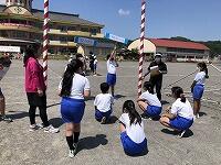 運動会当日は、かなり暑くなることが予想されます。子どもたちは、演技の時はマスクを外して、間隔をあけ、話をしないで行うことにしました。教員は基本的にマスクを付けますが、暑さ対策のため、「片耳ゴム」「あごマスク」にすることもありますので、どうぞご理解ください。