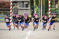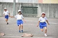 ↓↓ 3・4年生のレースです。スタートのピストル、障害物の準備や置く位置・移動の確認、審判の動き、放送のアナウンス・・・などなど