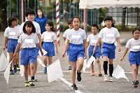 1時間目に、全体練習で係活動の予行練習をしました。今日は1・2年生と3・4年生の障害物競走のレースの一部を実際に行って、各係の仕事の確認をしました笑う