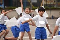 高学年らしい力強いダンスで、圧倒されます。腰を低く落としたり、網をたぐり寄せたり、後ろに放り投げたり…まるで目の前が海でそこに魚がいて、漁をしているかのような動きが、とてもかっこいいです期待・ワクワク