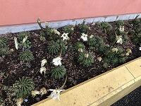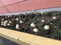 校舎の東側や玄関前に、たくさん植えてあるサボテンに、花が咲きました。