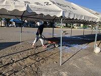 朝早くから、PTA会長さんを始め、執行部の方々や教職員で、テントの屋根の水を落としたり水たまりに砂を運んだり…という作業から開始しています。