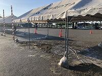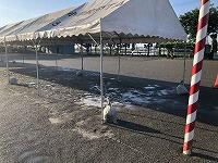 ↓↓ 昨日よりも、児童席の間隔を広く取れるようにするために、テントを2張多く移動しました。子どもたちは、ゆったり着席することができます了解