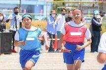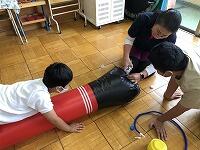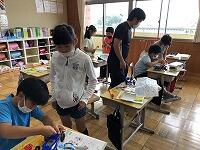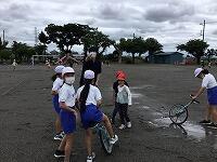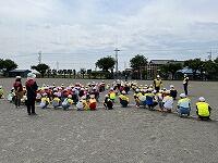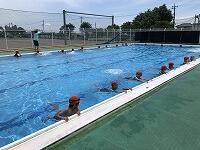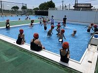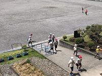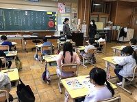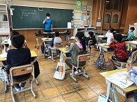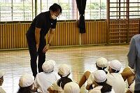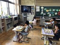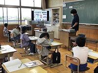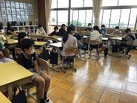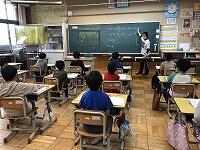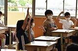 画像は、3・4年生の様子です。途中、「うがい・水分補給・休憩」の時間をとるなど、熱中症予防対策も万全に、授業を進めています了解