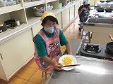 スクランブルエッグ、卵焼き、目玉焼きの3種類から、自分が作りたい料理を選び、自分の分は自分で作ります。